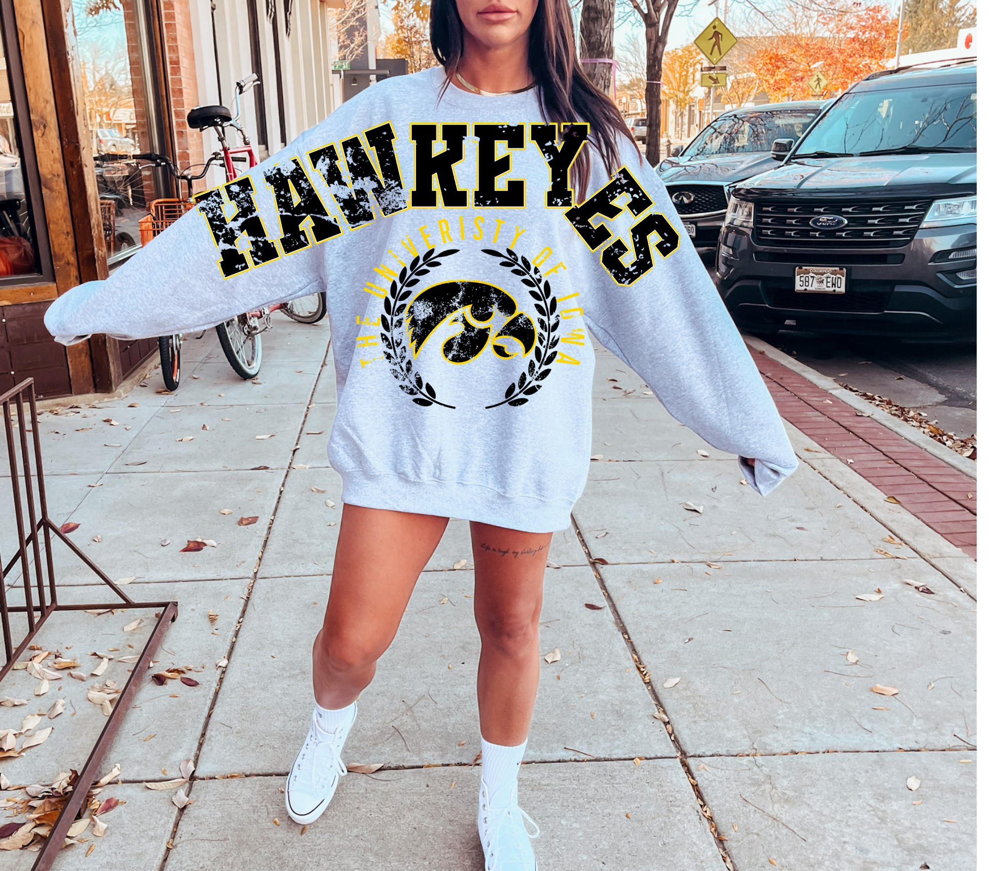 Pressed on a gildan ash grey unisex softsyle Crewneck . We use direct to garment pressing. Print is high quality.